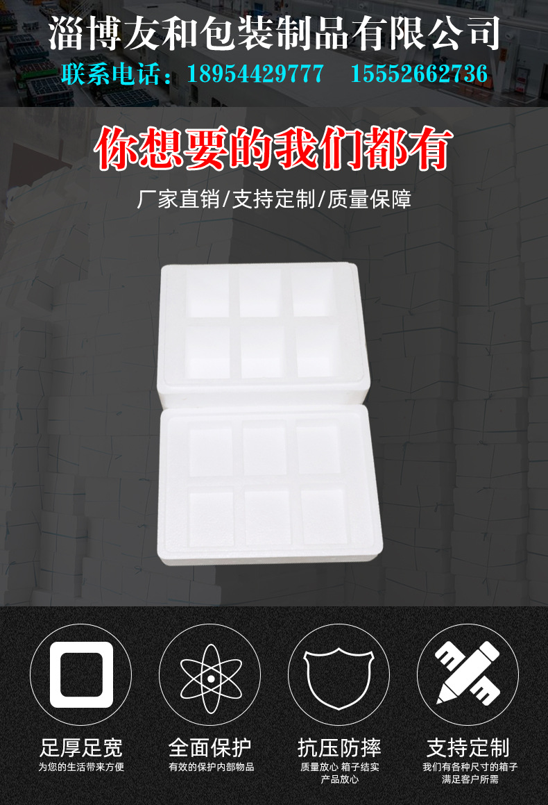 ????淄博友和包裝制品有限公司是專業(yè)的山東泡沫包裝箱加工廠家,本廠主要產(chǎn)品有:泡沫包裝箱,泡沫保鮮箱,水果蔬菜泡沫包裝箱,水果蔬菜泡沫保鮮箱,瓷磚泡沫包裝箱等,產(chǎn)品暢銷全國,深受用戶好評(píng)。泡沫包裝定做可以聯(lián)系我們網(wǎng)站 http://m.ogs.net.cn/ 上電話,我們會(huì)第一時(shí)間跟您聯(lián)系。